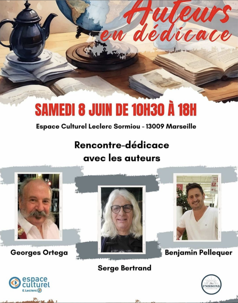 Samedi prochain, le 8 juin, vous pourrez retrouver Benjamin Pellequer, auteur de l'association Les Ecrits-Vents du Sud à l'espace culturel du Leclerc Sormiou (Marseille) - il présentera et dédicacera ses romans Cessation (Science-Fiction) et Hier (premier opus d'une trilogie d'anticipation)